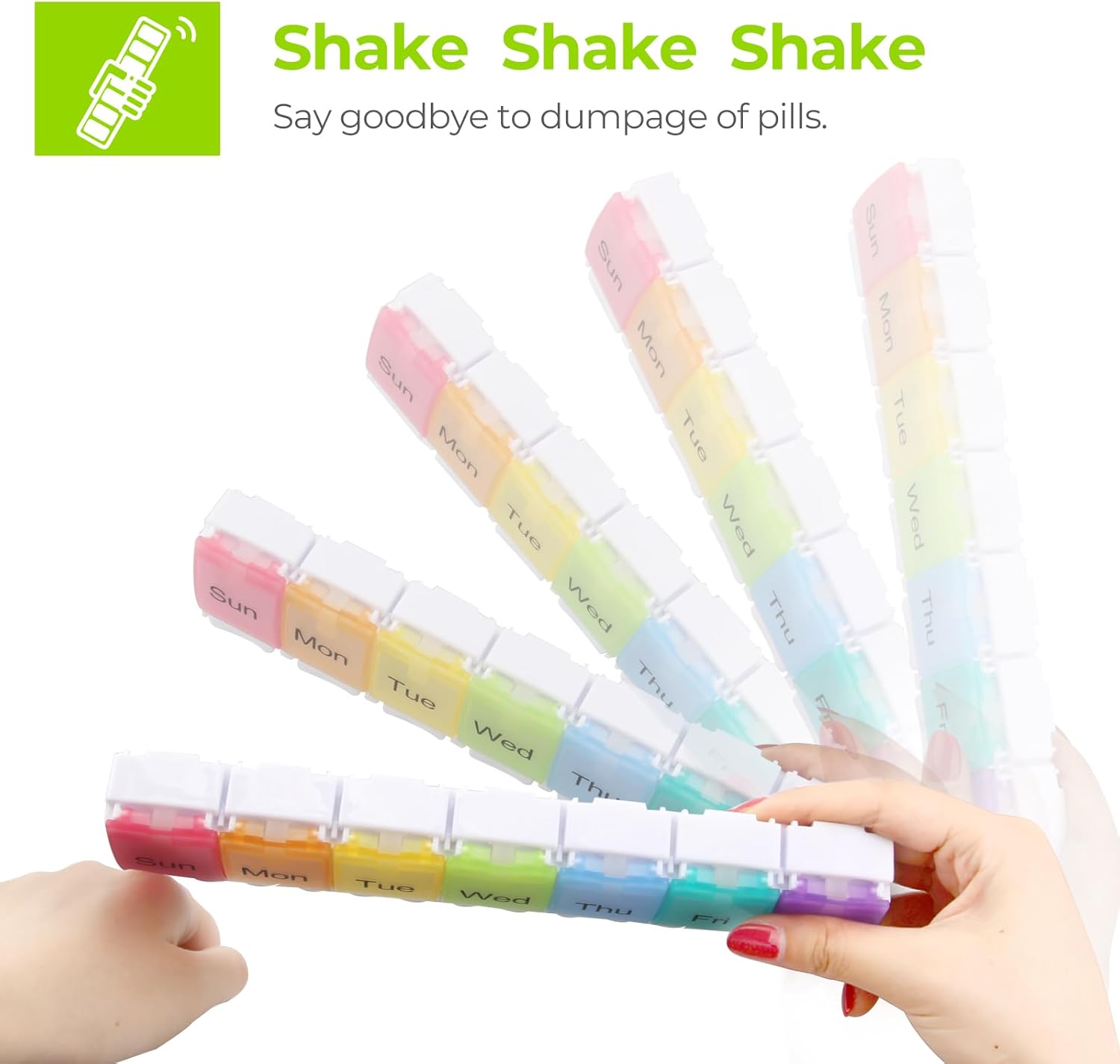 Feature | BPA-Free Material: This pill case is safe to store pills because it is made of food-grade materials. Worry-free with the BPA-free pill boxes and organizer when storing multiple pill regimes inside. With the transparent plastic lid, it’s quite easy to distinguish the pills in each dose without opening the lids |